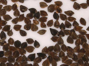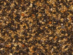 Leinsaat (Linum usitatissimum) ...oder auch Leinsamen genannt ist der Samen des Flachs. Er enthält etwa 35% Fett und zählt somit zu den ölhaltigen Sämereien. Die Körner werden schnell ranzig und dürfen daher nicht überlagert sein. Leinsamen haben sich beim Menschen als natürliches Abführmittel bewährt. Ihre abführende Wirkung beruht darauf, dass in der Samenschale Schleime enthalten sind, die durch Wasseraufnahme quellen. Daher darf Leinsaat auf keinen Fall in Keimfutter enthalten sein! Die schleimige Schicht verteilt sich auch in den anderen Saaten und macht das Futter ungenießbar. |