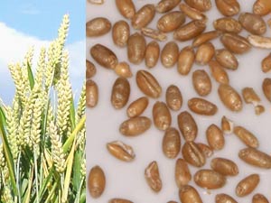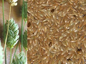 Weizen (Triticum) ...an sich ist zu hart für Nymphensittiche. In gequollener und gekeimter Form fressen fast alle Vögel ihn sehr gern. Man kann die Körner gut mit einem Tag Vorlauf vorbereiten. Dazu lässt man den Weizen etwa 8 Stunden in klarem Wasser quellen und danach im Sieb hängend stehen. Nach 24 Stunden zeigen sich meist schon die ersten Keimlinge, in diesem Zustand fressen Nymphensittiche den Weizen am Liebsten. |