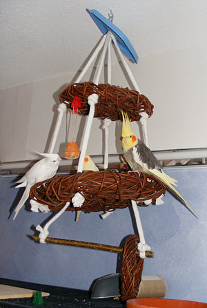Es müssen nicht immer die klassischen Schaukeln sein. Alles was sich bewegt, am besten noch unterwartet und extrem, ist bei Nymphensittichen beliebt.