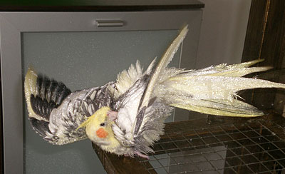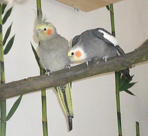 Die Aussage der Verkäuferin, man könne die Vögel auch ganzjährig am Haus halten, freute mich umso mehr, da ich auf dem Balkon eine kleine Voliere habe. Da die beiden dort draussen aber einen sehr unglücklichen Eindruck machten, hab ich nach ein paar Tagen begonnen mich im Internet zu informieren und bin im Forum der NymphensittichSeite gelandet.