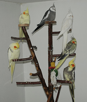 Mit der Zeit hatten wir einen kleinen Schwarm von 6 Nymphensittichen. Leider haben wir auch Tiere wegen Krankheit verloren und mussten notgedrungen einen Hahn in sehr gute Hände abgeben, weil es zu schweren Kämpfen kam. So konnte ich mit den Jahren einiges an Erfahrung mit diesen wunderbaren Vögeln sammeln und stehe nun auch schon seit ein paar Jahren den Usern dieses Forums mit Rat und Tat zur Seite.