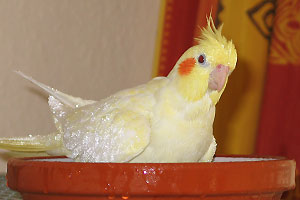 Die Körperpflege ist für Nymphensittiche nicht nur hygienische Notwendigkeit. Das Putzen nimmt einen großen Teil der täglichen Aktivitäten ein. Sowohl vor dem Dösen, als auch nach Ruhephasen nutzen die Tiere die Zeit häufig zur Gefiederpflege. Macht ein Nymphensittich Anstalten sich zu Putzen, überträgt sich diese Stimmung schnell auf die Schwarmmitglieder. Typischerweise beginnt das Tier mit dem Kleingefieder an Hals, Brust und Rücken. Die langen Schwanz- und Schwungfedern werden einzeln durch den Schnabel gezogen, wobei erstaunliche Verrenkungen dazu gehören.