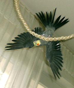 Nymphensittiche sind ausdauernde Langstreckenflieger. In Volierenhaltung können sie dieses Verhalten kaum ausleben, schon deshalb muss man den Vögeln genügend Abwechslungs- und Beschäftigungsmöglichkeiten bieten. Jungvögel können anfangs nur schwer Kurven fliegen und auch das Landen muss mühsam erlernt werden. Später aber sind Nymphensittiche richtige Meisterflieger. Sie fliegen enge Kurven, und können sich im Sturzflug bis auf wenige Zentimeter genau vor dem Boden abfangen. Besonders morgens toben sie die Tiere richtig aus.